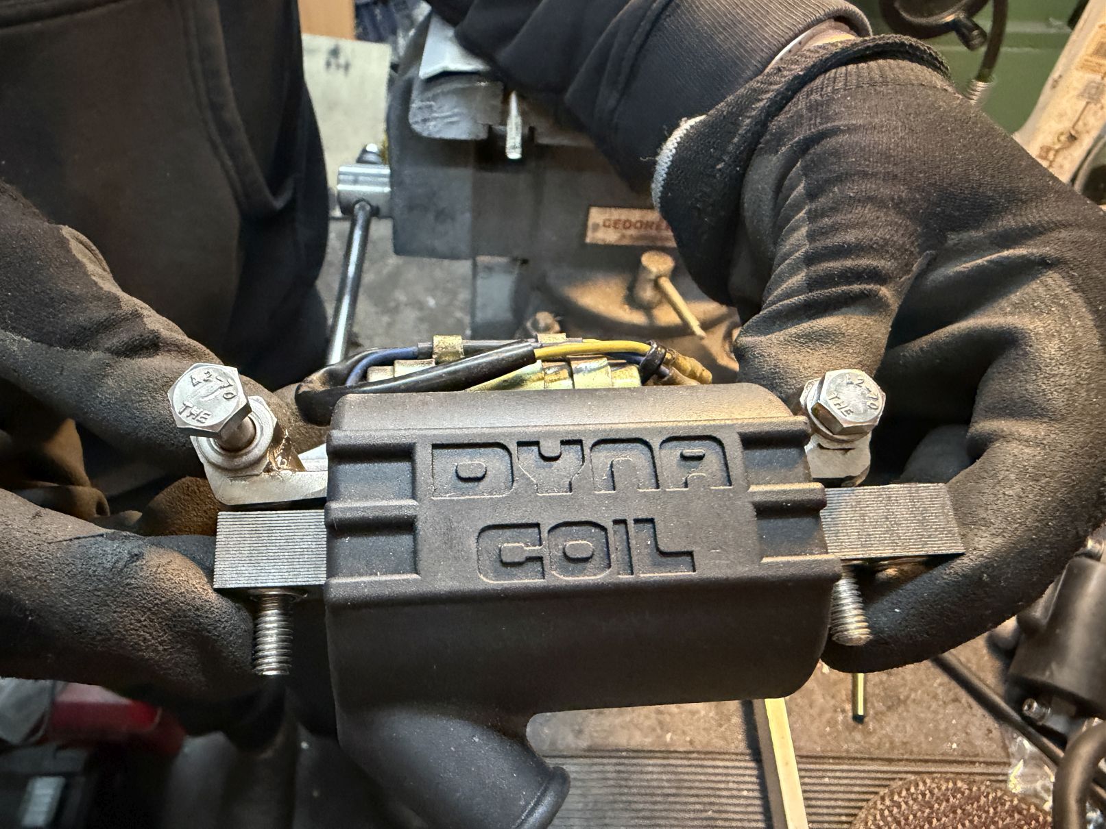 28.02.2026 - Zeit wird's, wieder an der Honda zu arbeiten - wir haben abgewartet, bis die Temperaturen wieder ertäglich sind. Bei Dieter werden die Zündspulen mitsamt Halterung aus dem Mopped ausgebaut, dann dackeln wir in meinen Bastel- keller. Zuerst wird der Gabelholm zusammengebaut, mit neuem Simmerring und neuem Dämpfer-"Kolbenring". Die Zündspulen machen viel, viel mehr Arbeit: Die neuen Spulen haben zwar fast die gleichen Abmessungen, aber die Befesti- gungsbohrungen passen nicht, also müssen wir praktisch ähnliche Halterungen anfertigen wie an meiner CB. Die alte Halterung der Spulen taugt nur zum Maß- nehmen, wir nehmen 5mm VA Blech und VA Sechskantstäbe, dann wird gemessen, gesägt, gebohrt, geschweißt, geflext und Gewinde geschnitten, bis die Spulen an die Rahmenbefestigung passen sollten, nach über 5 Stunden (!) sind wir endlich fertig, nicht, ohne am Ende kurz zu zweifeln, ob wir nicht doch noch einen Fehler gemacht haben - das stimmt zum Glück nicht, aber es ist ein deutliches Signal, das wir zu viel Zeit im Bastelkeller verbracht haben und die Zelte abbrechen müssen. Aber wir habens's geschafft, nun müssen der Gabelholm und die neuen Spulen "nur noch" angebaut werden, mal sehen, wann wir Zeit haben und das Wetter passt.